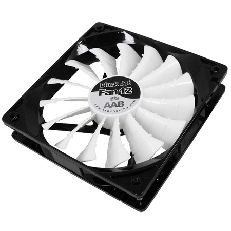 - The AAB Cooling Black Jet Fan 12 is a highly-designed JET-Series fan with up to 15 turbine blades. This allows for significant increase in efficiency (up to about 65%) and noise reduction compared to standard fans.
