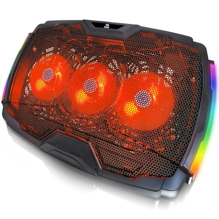 • Vela to lekka podkładka chłodząca do laptopa, wyposażona w trzy wydajne wentylatory i efektowne podświetlenie RGB. Zapewnia efektywne chłodzenie i stylowy wygląd, idealny do codziennego użytku i gamingu.