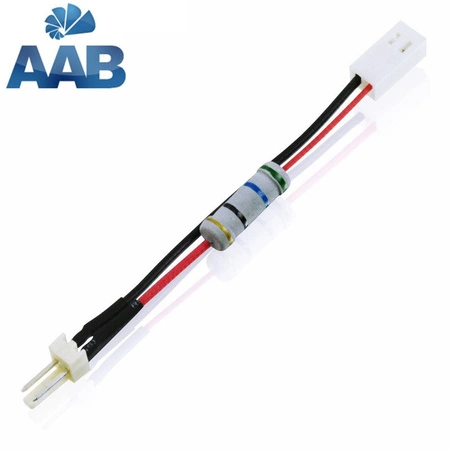 AABCOOLING AAB C15 to kabel pozwalający obniżyć napięcie zasilania wentylatora ze złączem 2/3/4 Pin, zastosowanie rezystora 56 ohm pozwala na zmniejszenie napięcie z 12V do 7V. Zmniejszenie hałasu wentylatora.
