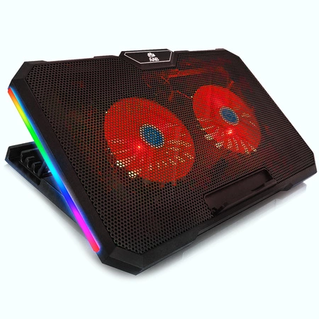 Przenieś się w świat rześkiego powiewu powietrza! Wbudowane wentylatory generuje chłodne powietrze zasysając je od spodu i kierują na rozgrzany spód Twojego laptopa. Podstawka chłodząca posiada wbudowany regulator obrotów wentylatorów oraz przycisk ON/OFF do obsługi funkcji bocznego podświetlania w kolorach RGB. Grasz w gry? Potrzebujesz dodatkowej wydajności chłodzenia? - to jest produkt dla Ciebie - ustaw potencjometr na MAX! Dzięki regulacji kąta nachylenia dostosujesz nachylenie swojego laptopa idealne dla zapewnienia największego komfortu tylko dla Siebie.