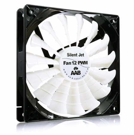 • AABCOOLING Silent Jet Fan 12 PWM to premiera wentylatora z serii JET w którym zastosowano, aż 15 łopatek wentylatora. Wzrost wydajności (o ok 65%). Wentylator jest sterowany sygnałem PWM i pracuje ze zmienną ilością obrotów 400-1600±10%.